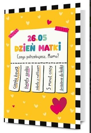 Kartka zawiera życzenia. W zestawie znajduje się koperta, kolorystycznie uzupełniająca się z kartką.