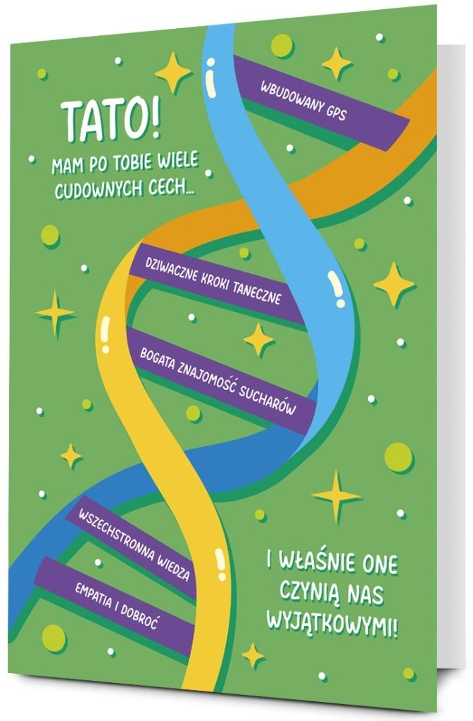 Kartka zawiera życzenia. W zestawie znajduje się koperta, kolorystycznie uzupełniająca się z kartką.