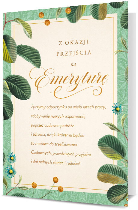 Kartka zawiera życzenia. W zestawie znajduje się koperta, kolorystycznie uzupełniająca się z kartką.