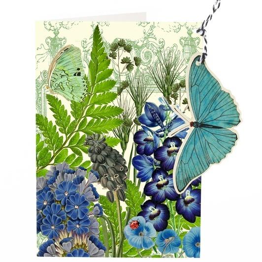 FD004 Karnet B6 i zawieszka z kopertą - Niebieski motyl, wyprodukowany w Wielkiej Brytanii