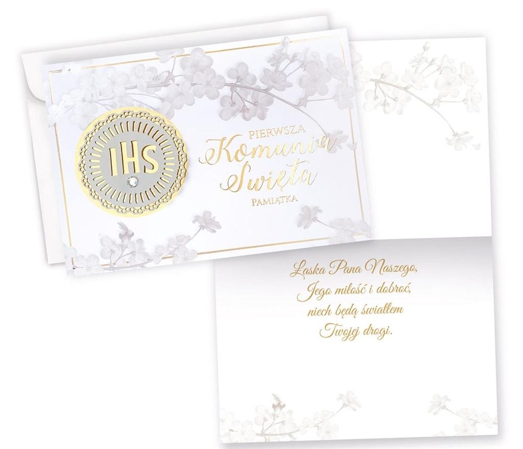 Kartka B6 z ozdobnej serii Dream Cards na Komunię - nieduża, ale robi wrażenie dzięki atrakcyjnej kolorystyce i ciekawym zdobieniom. To idealny wybór łączący przyjazną cenę z jakością. Cechy szczególne: wielkość: B6, 16.6 x 11.7 cm po złożeniu, koperta: w zestawie, kolorowa, zdobienia: różnorodne, bogate (w zależności od wzoru: przyklejane dekoracje, elementy biżuteryjne, odstawniki, brokat metaliczne folie, tłoczenia itp.), okazja: Komunia