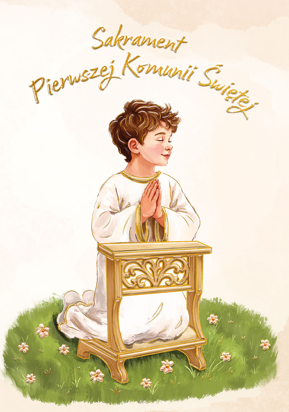 Karnet B6 Komunia Chłopiec na klęczniku