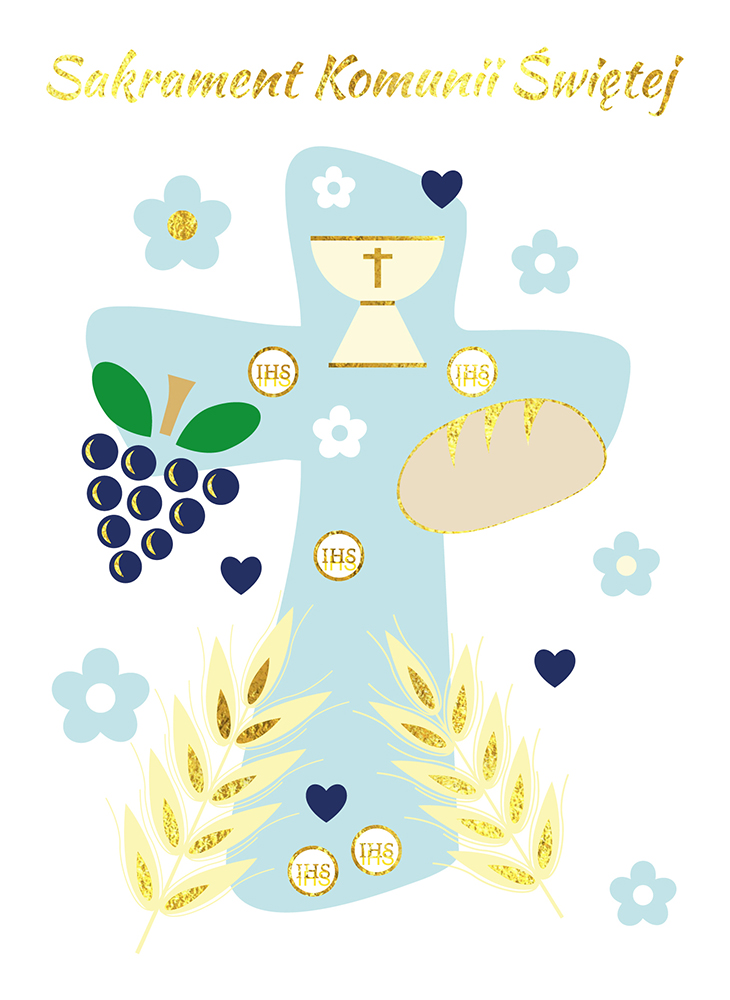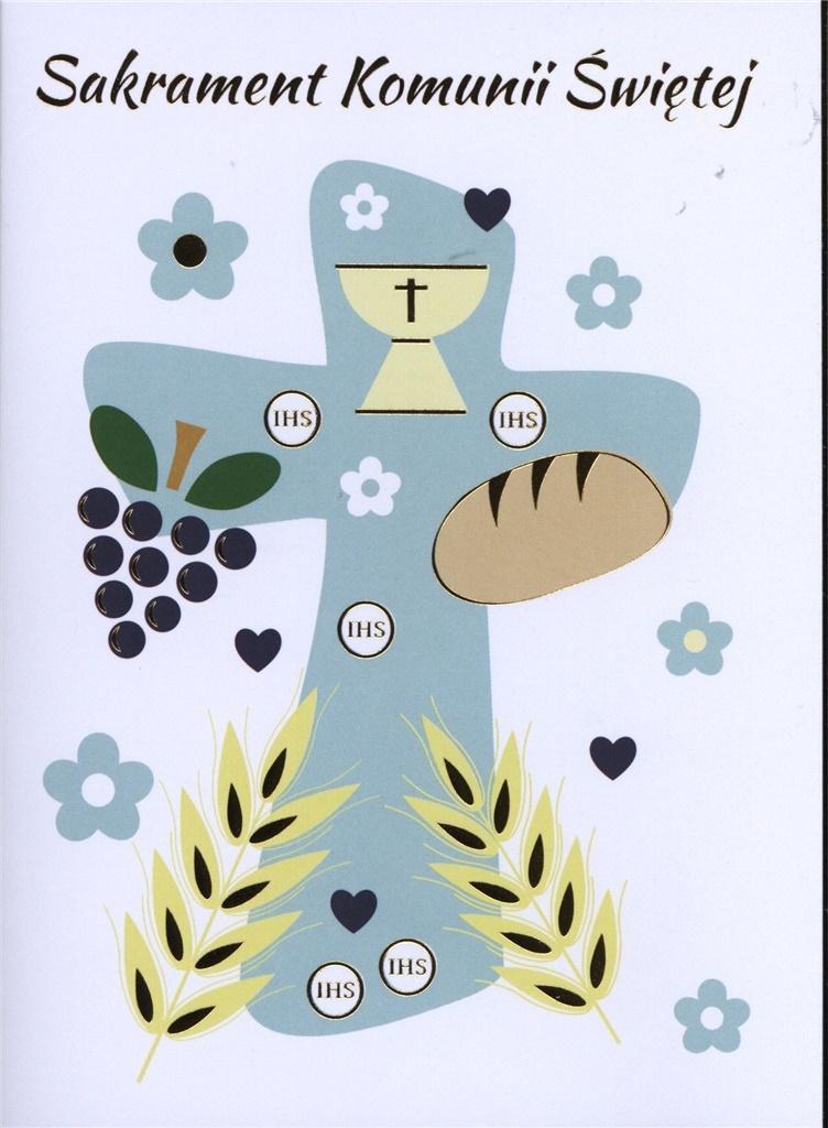 Karnet B6 Komunia krzyż niebieski