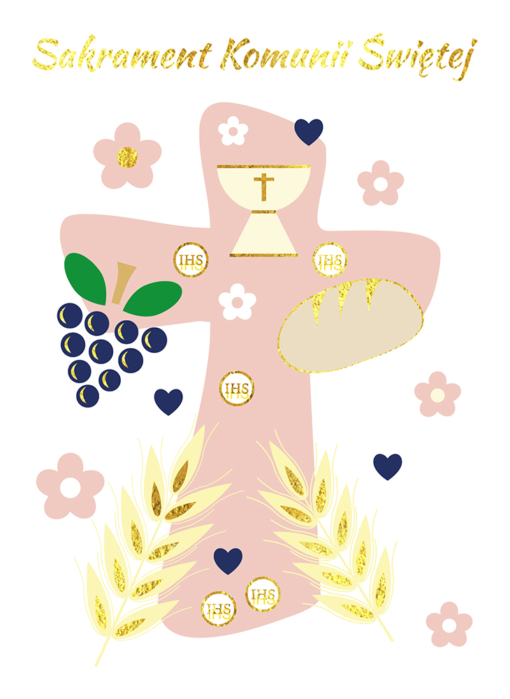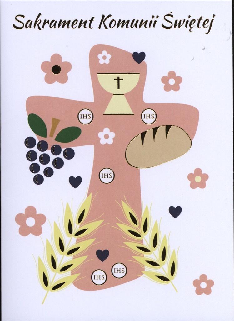 Okładka książki Karnet B6 Komunia krzyż różowy