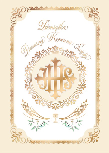 Karnet w formacie B6, złocony i tłoczony, teksy życzeń w środku.