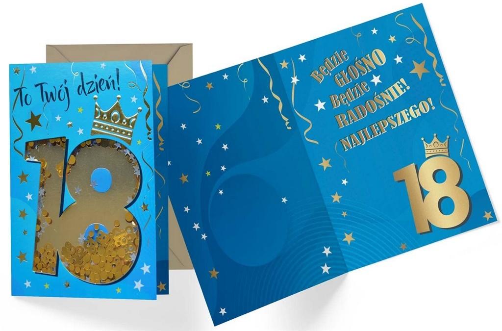 Karnet B6 konfetti KNF-033 Urodziny 18 męskie