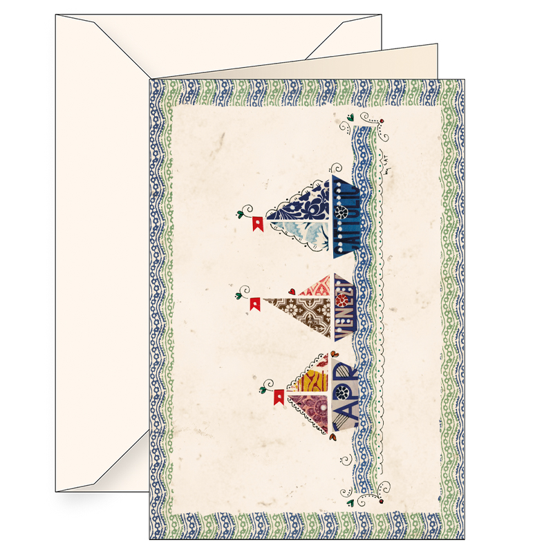 Ozdobny karnet w formacie B6 z kopertą, gramatura papieru 200g/m2, wyprodukowany we Włoszech.