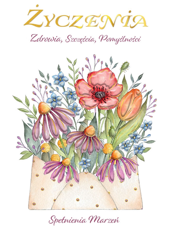 Karnet okolicznościowy w formacie b6 w zestawie z kopertą. Złocony i tłoczony.