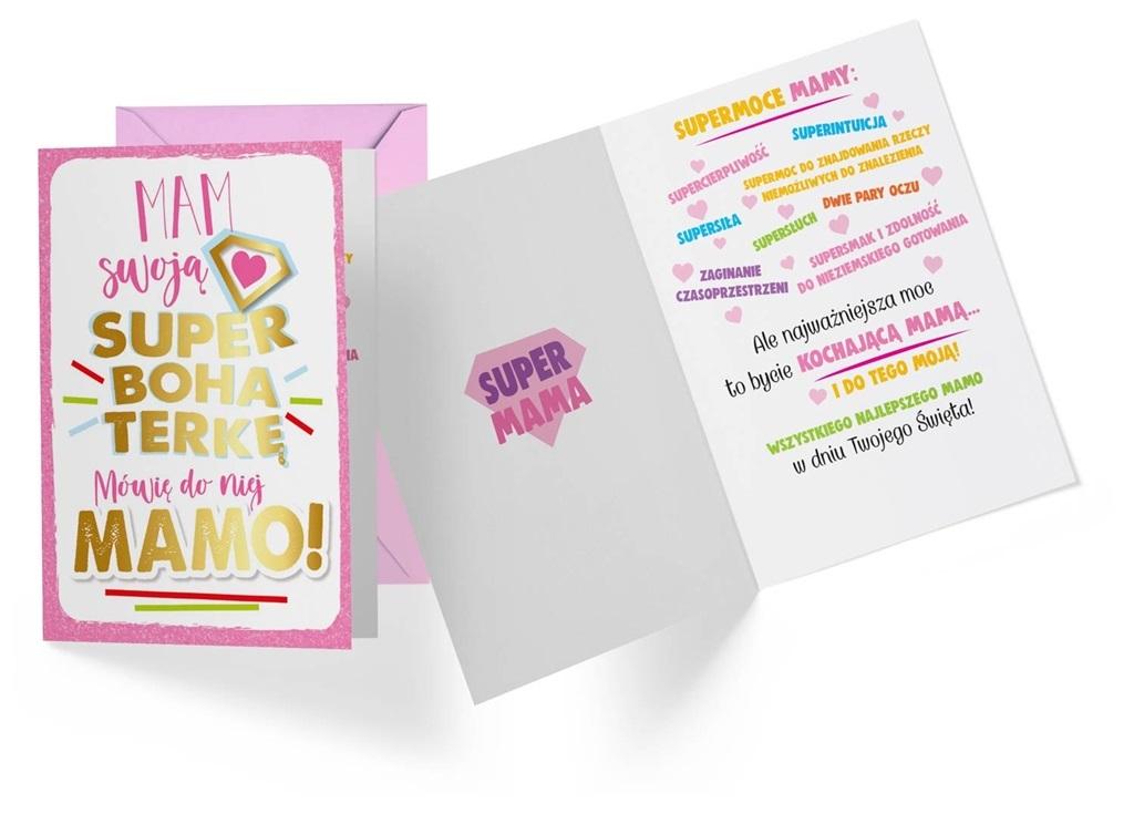 Kartka B6 z ozdobnej serii Dream Cards na Dzień Mamy- nieduża, ale robi wrażenie dzięki atrakcyjnej kolorystyce i ciekawym zdobieniom. To idealny wybór łączący przyjazną cenę z jakością. Cechy szczególne: wielkość: B6, 16.6 x 11.7 cm po złożeniu, koperta: w zestawie, kolorowa, zdobienia: różnorodne, bogate (w zależności od wzoru: przyklejane dekoracje, elementy biżuteryjne, odstawniki, brokat, metaliczne folie, tłoczenia itp.), okazja: Dzień Mamy.