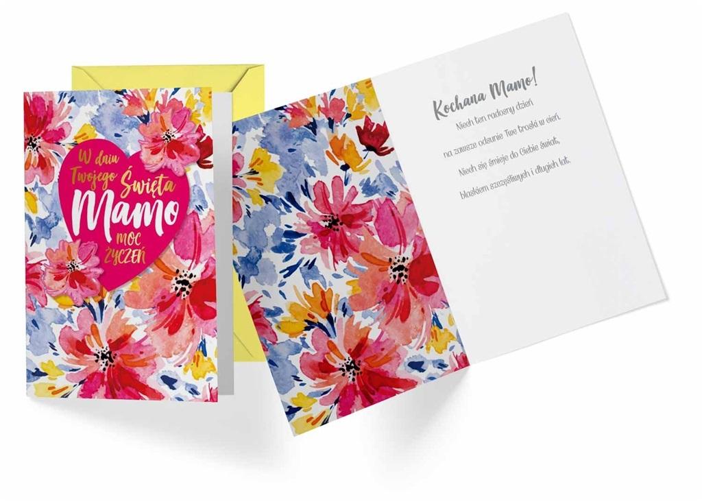 Kartka B6 z ozdobnej serii Dream Cards na Dzień Mamy- nieduża, ale robi wrażenie dzięki atrakcyjnej kolorystyce i ciekawym zdobieniom. To idealny wybór łączący przyjazną cenę z jakością. Cechy szczególne: wielkość: B6, 16.6 x 11.7 cm po złożeniu, koperta: w zestawie, kolorowa, zdobienia: różnorodne, bogate (w zależności od wzoru: przyklejane dekoracje, elementy biżuteryjne, odstawniki, brokat, metaliczne folie, tłoczenia itp.), okazja: Dzień Mamy.