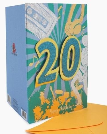 Wyjątkowy karnet z okazji 20 Urodzin, idealny dla miłośnika muzyki. W zestawie koperta.
