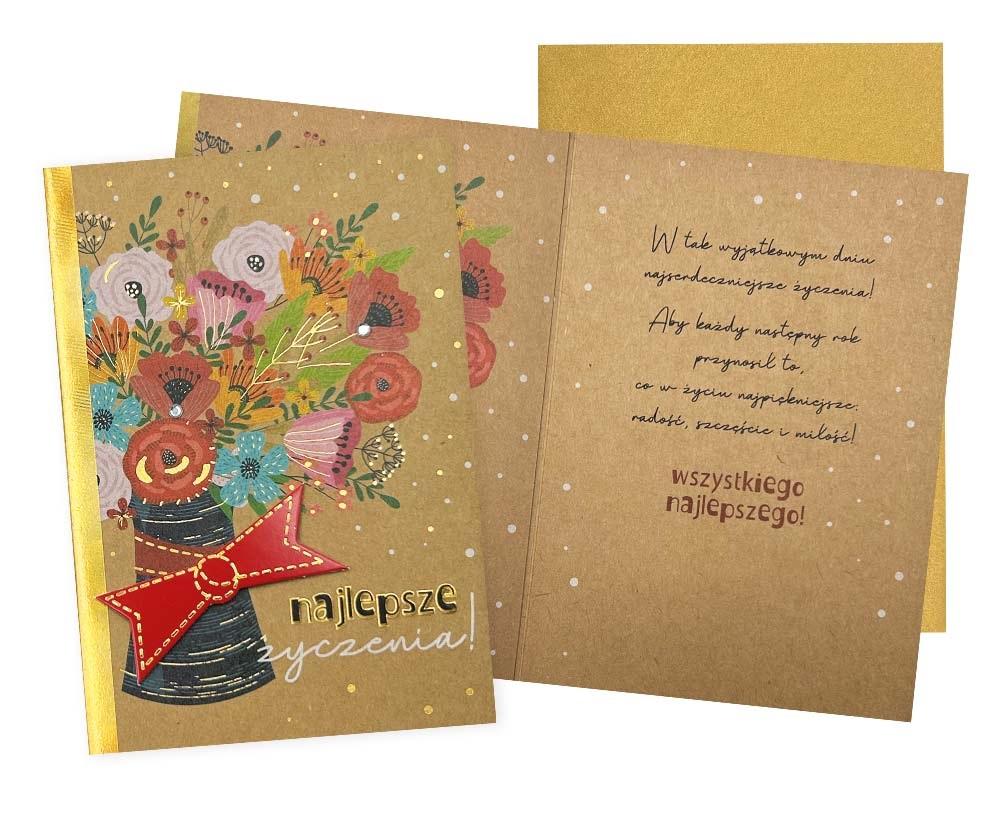 Opakowanie Karnet B6 Najlepsze życzenia złoty kwiaty