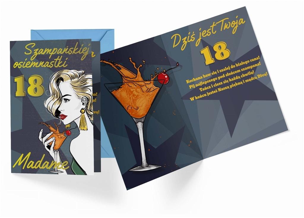 Kartki z serii Passion Premium to świetny pomysł na piękną pamiątkę w super cenie. Każda kartka PR jest zdobiona przynajmniej dwoma rodzajami uszlachetnień - metaliczne lub perłowe folie, brokat, tłoczenie itp. - tyle piękna w takim drobiazgu! Każda kartka Passion Premium ma kolorowe wnętrze z tekstem wyjątkowych życzeń i grafiką, w komplecie jest także dopasowana kolorystycznie koperta. Cechy szczególne: wielkość: B6, 16.6 x 11.7 cm po złożeniu, koperta: dopasowana w zestawie, zdobienia: przynajmniej dwa rodzaje, często więcej - złota, srebrna lub perłowa folia, brokat, tłoczenia, wnętrze kartki: kolorowe, z życzeniami, okazja: 18 urodziny, osiemnastka.