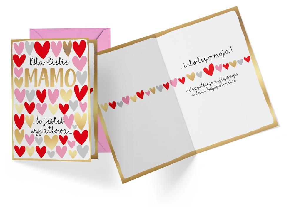 Kartki z serii Passion Premium to świetny pomysł na piękną pamiątkę w super cenie. Każda kartka PR jest zdobiona przynajmniej dwoma rodzajami uszlachetnień - metaliczne lub perłowe folie, brokat, tłoczenie itp. - tyle piękna w takim drobiazgu! Każda kartka Passion Premium ma kolorowe wnętrze z tekstem wyjątkowych życzeń i grafiką, w komplecie jest także dopasowana kolorystycznie koperta. Cechy szczególne: wielkość: B6, 16.6 x 11.7 cm po złożeniu, koperta: dopasowana w zestawie, zdobienia: przynajmniej dwa rodzaje, często więcej - złota, srebrna lub perłowa folia, brokat, tłoczenia, wnętrze kartki: kolorowe, z życzeniami, okazja: Dzień Mamy.