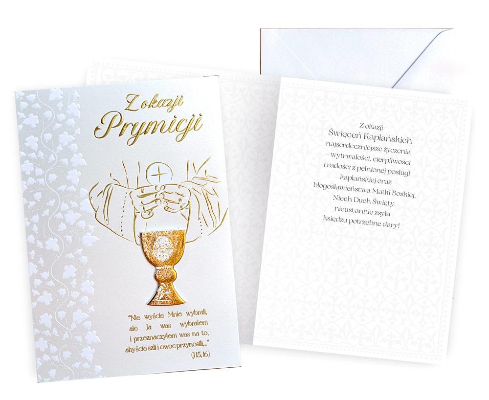 Kartka B6 z ozdobnej serii Dream Cards na prymicję - nieduża, ale robi wrażenie dzięki atrakcyjnej kolorystyce i ciekawym zdobieniom. To idealny wybór łączący przyjazną cenę z jakością. Cechy szczególne: wielkość: B6, 16.6 x 11.7 cm po złożeniu, koperta: w zestawie, zdobienia: kolorowe, różnorodne, bogate (w zależności od wzoru: przyklejane dekoracje, elementy biżuteryjne, odstawniki, brokat metaliczne folie, tłoczenia itp.), okazja: prymicja