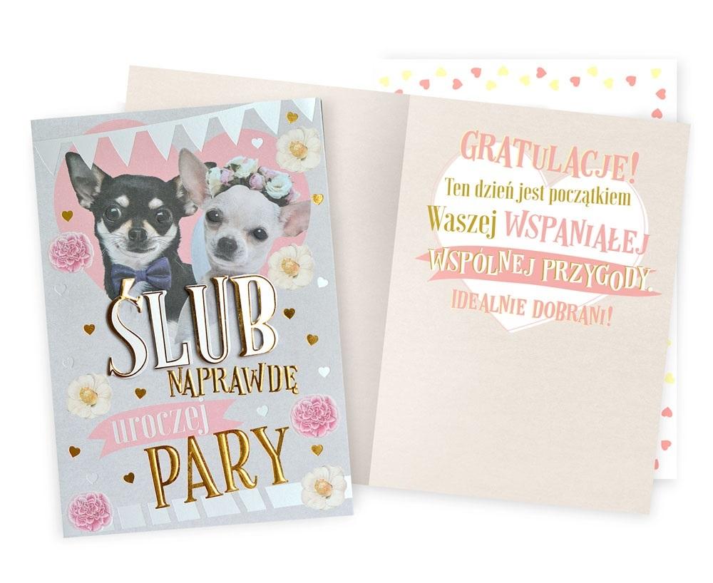 Kartka B6 z ozdobnej serii Dream Cards na ślub - nieduża, ale robi wrażenie dzięki atrakcyjnej kolorystyce i ciekawym zdobieniom.