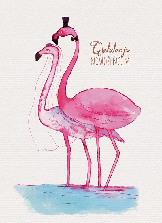 Karnet B6 Ślub - Flamingi