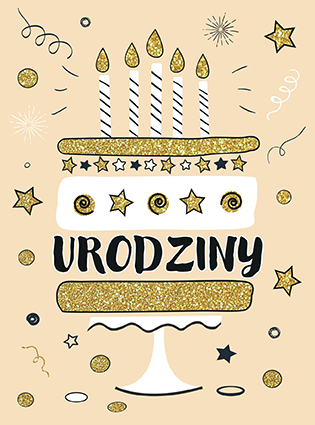 Karnet uszlachetniony ZŁOTYM BROKATEM.