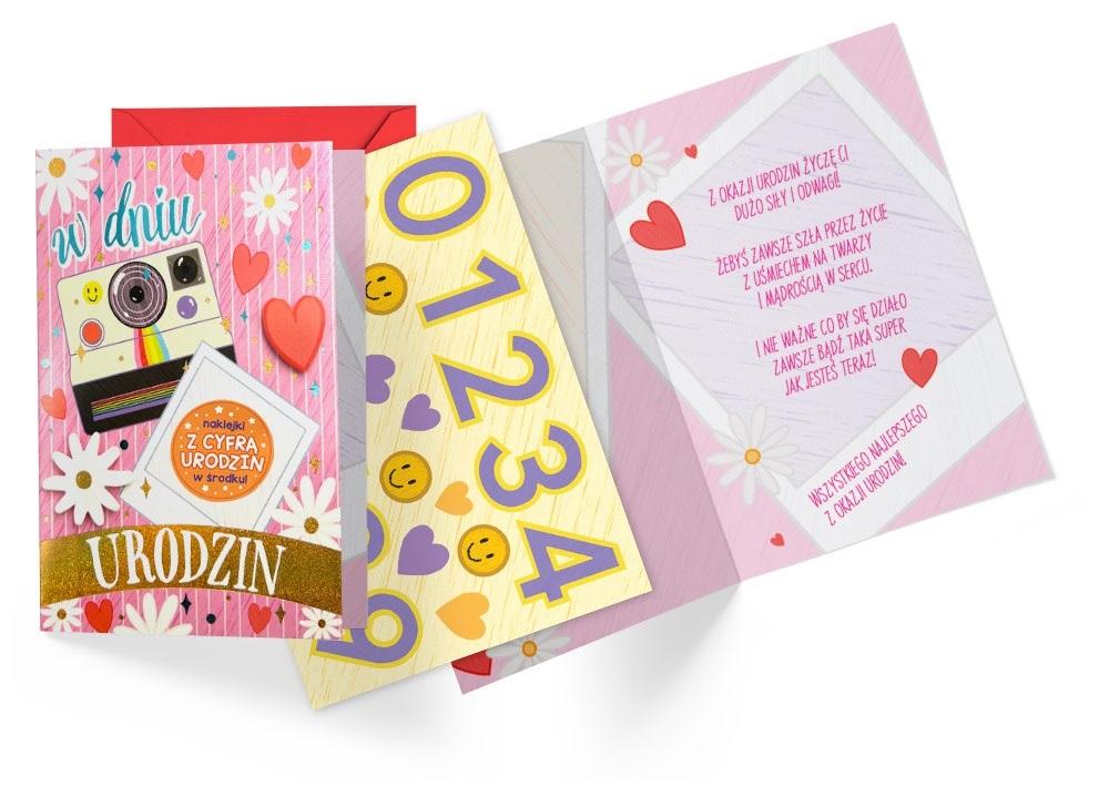 To idealny wybór łączący przyjazną cenę z jakością. Kartki z tej serii mają wyjątkowy dodatek - naklejki z cyferkami, z których można ułożyć dowolny wiek solenizanta.