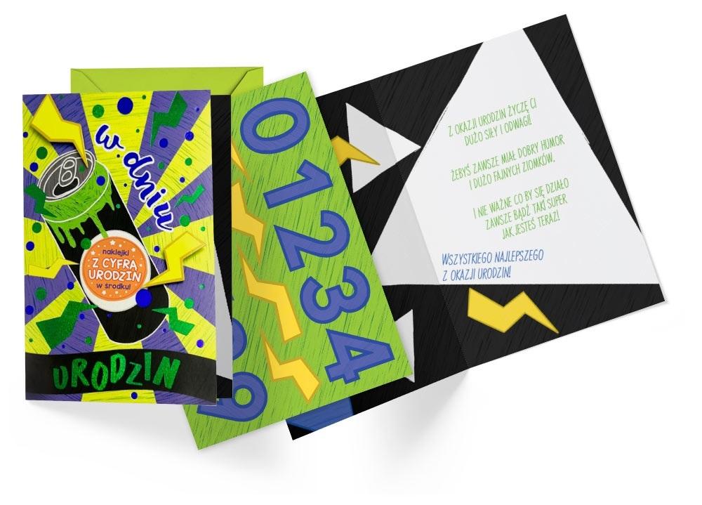 To idealny wybór łączący przyjazną cenę z jakością. Kartki z tej serii mają wyjątkowy dodatek - naklejki z cyferkami, z których można ułożyć dowolny wiek solenizanta.