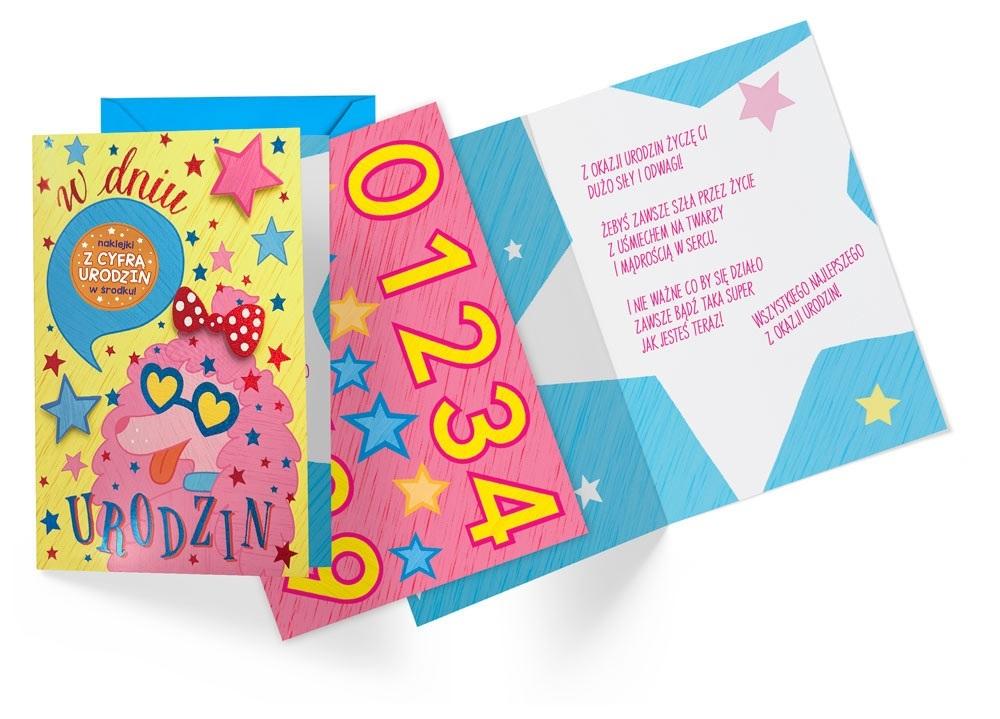 To idealny wybór łączący przyjazną cenę z jakością. Kartki z tej serii mają wyjątkowy dodatek - naklejki z cyferkami, z których można ułożyć dowolny wiek solenizanta.