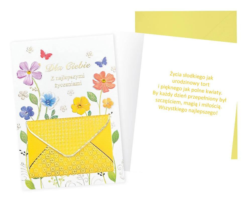 Kartka B6 z ozdobnej serii Dream Cards na urodziny - nieduża, ale robi wrażenie dzięki atrakcyjnej kolorystyce i ciekawym zdobieniom. To idealny wybór łączący przyjazną cenę z jakością. Cechy szczególne: wielkość: B6, 16.6 x 11.7 cm po złożeniu, koperta: w zestawie, kolorowa, zdobienia: kolorowe, różnorodne, bogate (w zależności od wzoru: przyklejane dekoracje, elementy biżuteryjne, odstawniki, metaliczne folie, tłoczenia itp.), okazja: urodziny