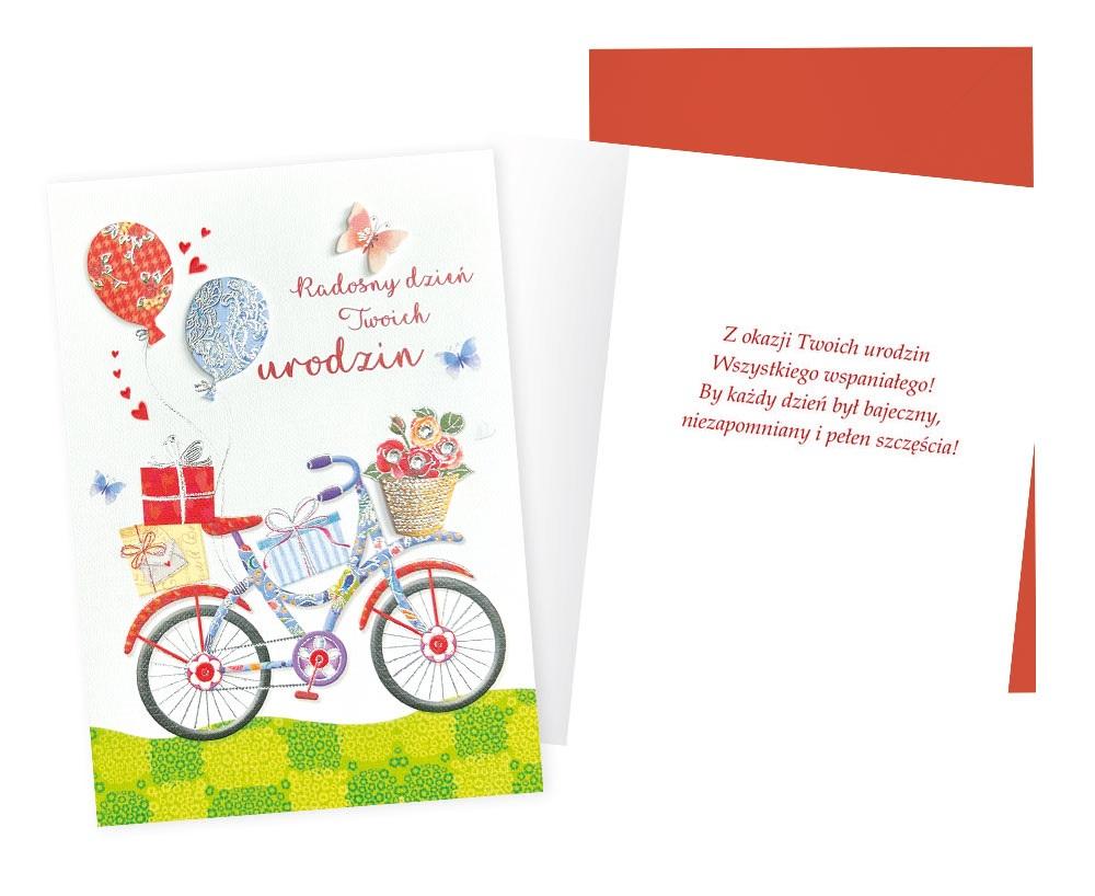 Kartka B6 z ozdobnej serii Dream Cards na urodziny - nieduża, ale robi wrażenie dzięki atrakcyjnej kolorystyce i ciekawym zdobieniom.