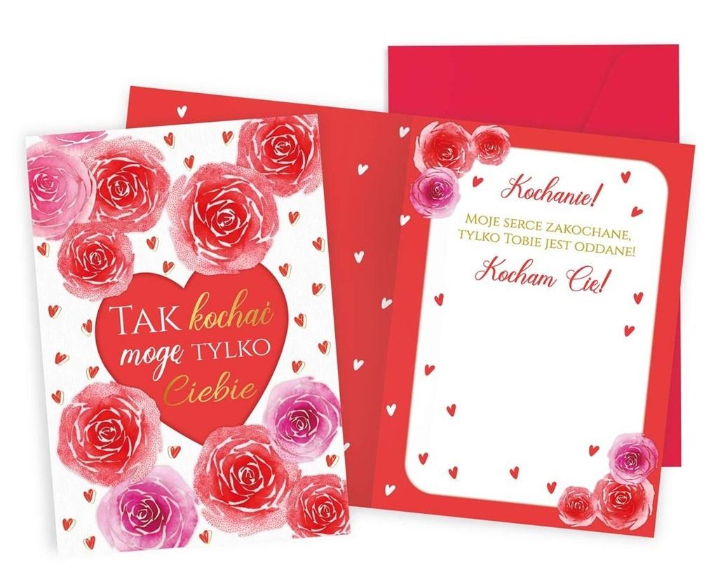 Kartka PR jest zdobiona przynajmniej dwoma rodzajami uszlachetnień - metaliczne lub perłowe folie, brokat, tłoczenie itp.- tyle piękna w takim drobiazgu! Każda kartka Passion Premium ma kolorowe wnętrze z tekstem wyjątkowych życzeń i grafiką, w komplecie jest także dopasowana kolorystycznie koperta. Cechy szczególne: wielkość: B6, 16.6 x 11.7 cm po złożeniu, koperta: dopasowana w zestawie, zdobienia: przynajmniej dwa rodzaje, często więcej - złota, srebrna lub perłowa folia, brokat, tłoczenia, wnętrze kartki: kolorowe, z życzeniami, okazja: Walentynki