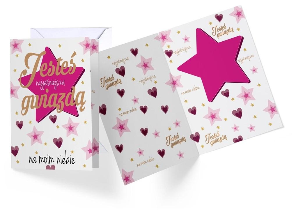 Kartki z okazji walentynek posiadają piękne, walentynkowe grafiki. Kartka wielkości B6, zdobiona w zależności od wzoru metaliczną folią lub brokatem, kartka z tekstem w środku, kolorowa w środku i na zewnątrz. w środku kartki znajdują się życzenia, do zestawu dołączona jest koperta.