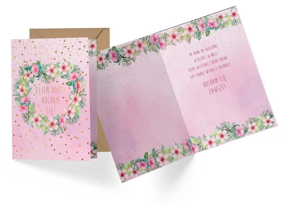 Kartki z okazji walentynek posiadają piękne, walentynkowe grafiki. Kartka wielkości B6, zdobiona w zależności od wzoru metaliczną folią lub brokatem, kartka z tekstem w środku, kolorowa w środku i na zewnątrz. w środku kartki znajdują się życzenia, do zestawu dołączona jest koperta.
