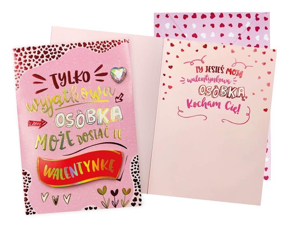 Kartka B6 z ozdobnej serii Dream Cards na Walentynki - nieduża, ale robi wrażenie dzięki atrakcyjnej kolorystyce i ciekawym zdobieniom. To idealny wybór łączący przyjazną cenę z jakością. Cechy szczególne: wielkość: B6, 16.6 x 11.7 cm po złożeniu, koperta: w zestawie, kolorowa, zdobienia: różnorodne, bogate (w zależności od wzoru: przyklejane dekoracje, elementy biżuteryjne, odstawniki, brokat metaliczne folie, tłoczenia itp.), okazja: Walentynki