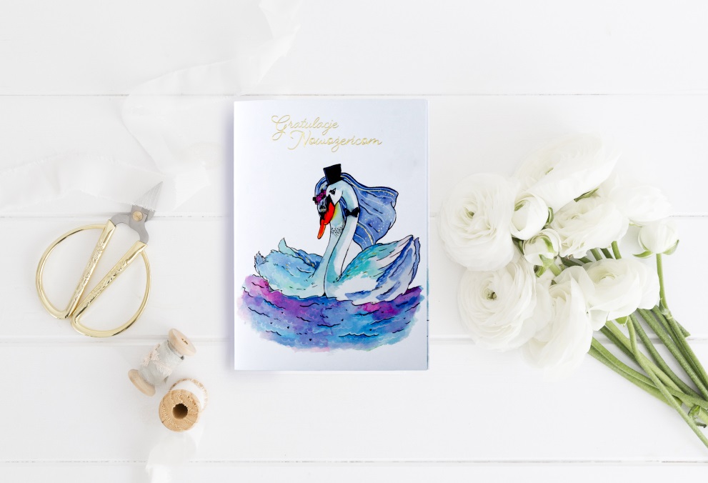 Opakowanie Karnet B6 z kieszonką - Łabędzie