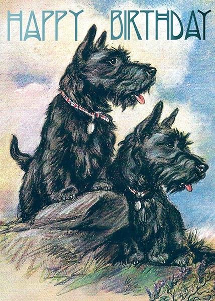 Karnet B6 z kopertą Urodziny Terier Szkocki, w środku bez tekstu, wyprodukowany w Wielkiej Brytanii.