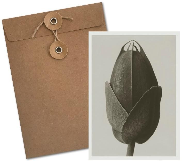 Wyjątkowy karnet retro (bez tekstu) z serii Karl Blossfeldt. W zestawie oryginalna brązowa koperta wiązana na sznurek.