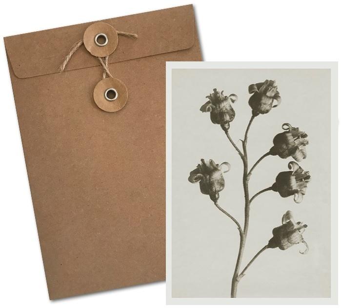 Wyjątkowy karnet retro (bez tekstu) z serii Karl Blossfeldt. W zestawie oryginalna brązowa koperta wiązana na sznurek.