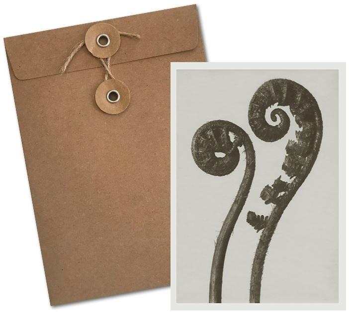 Wyjątkowy karnet retro (bez tekstu) z serii Karl Blossfeldt. W zestawie oryginalna brązowa koperta wiązana na sznurek.