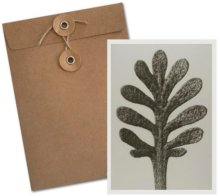 Wyjątkowy karnet retro (bez tekstu) z serii Karl Blossfeldt. W zestawie oryginalna brązowa koperta wiązana na sznurek.