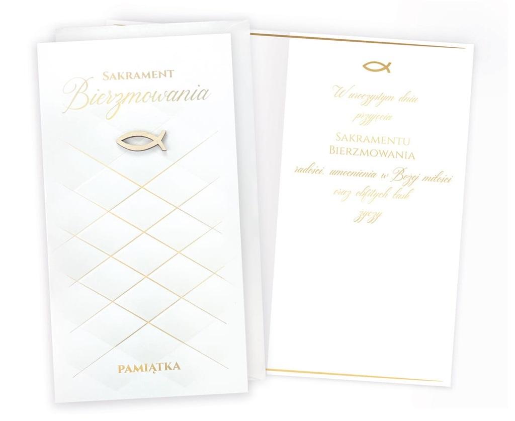 Każda kartka w kolekcji Passion Moments to małe arcydzieło - wyjątkowe i niepowtarzalne, piękne wizualnie. Kartki PM są bardzo bogato zdobione, a jednocześnie skromne i stylowe, cały efekt tkwi w detalach i doskonałym wykonaniu. W zależności od wzoru, na kartkach znajdują się dekoracje ze złotej, srebrnej, perłowej lub holograficznej folii, a także doklejki biżuteryjne, kokardki, brokat, laserowe wycięcia, wstążeczki i inne dodatki. Wnętrze karnetu to zawsze atrakcyjna grafika i tekst życzeń. Kartki mają w komplecie dopasowaną kopertę. Cechy szczególne: zdobienie: przynajmniej dwie folie (metaliczne/perłowe/holograficzne), brokat, elementy doklejane, wycięcia laserowe, wstążeczki - w zależności od wzoru, wnętrze: z delikatną grafiką, wyjątkowe życzenia w środku, w komplecie: dopasowana kolorystycznie koperta, okazja: bierzmowanie Wymiary karnetu po złożeniu: 11,4 x 21,5 cm.