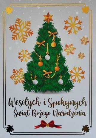 Karnet 1k. Klasyczny karnet na Święta Bożego Narodzenia. Uszlachetniony wysokiej jakości hotstampingiem (złocenie). Karnet zawiera życzenia.
