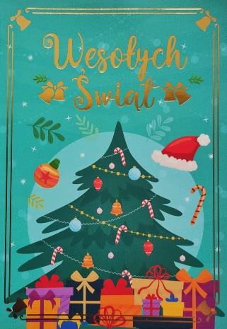 Karnet 1k. Klasyczny karnet na Święta Bożego Narodzenia. Uszlachetniony wysokiej jakości hotstampingiem (złocenie). Karnet zawiera życzenia.