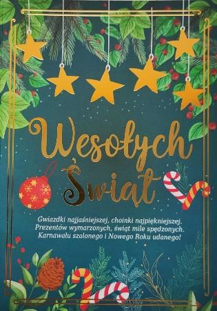 Karnet 1k. Klasyczny karnet na Święta Bożego Narodzenia. Uszlachetniony wysokiej jakości hotstampingiem (złocenie). Karnet zawiera życzenia.