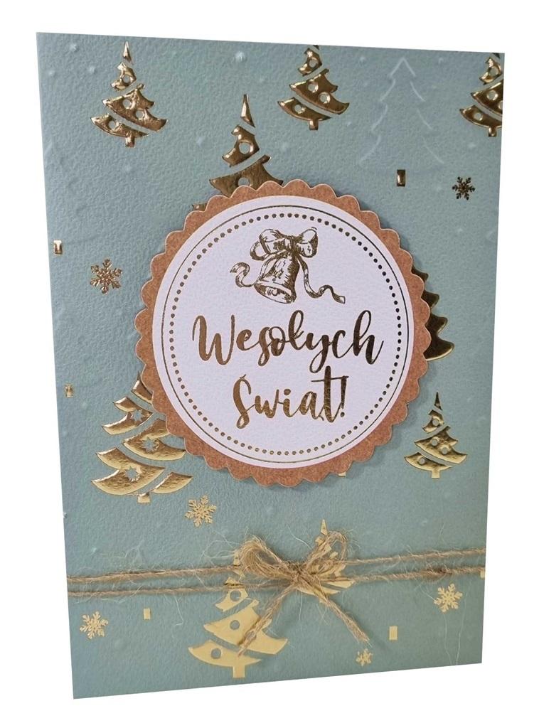 Karnet okolicznościowy z kopertą i życzeniami w środku.