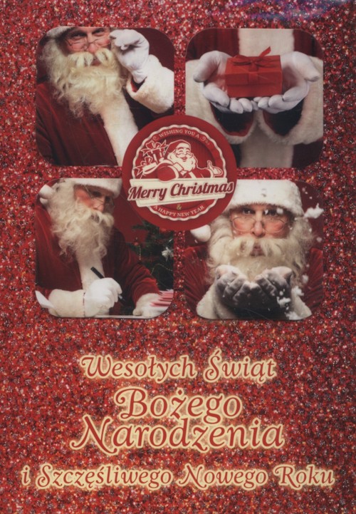 Składany karnet z elementami 3D, z miejscem na wpisanie życzeń z okazji Bożego Narodzenia i Nowego Roku Format złożony: 119x168 mm, rozłożony 238x168 mm Karnet foliowany i brokatowany, w komplecie koperta