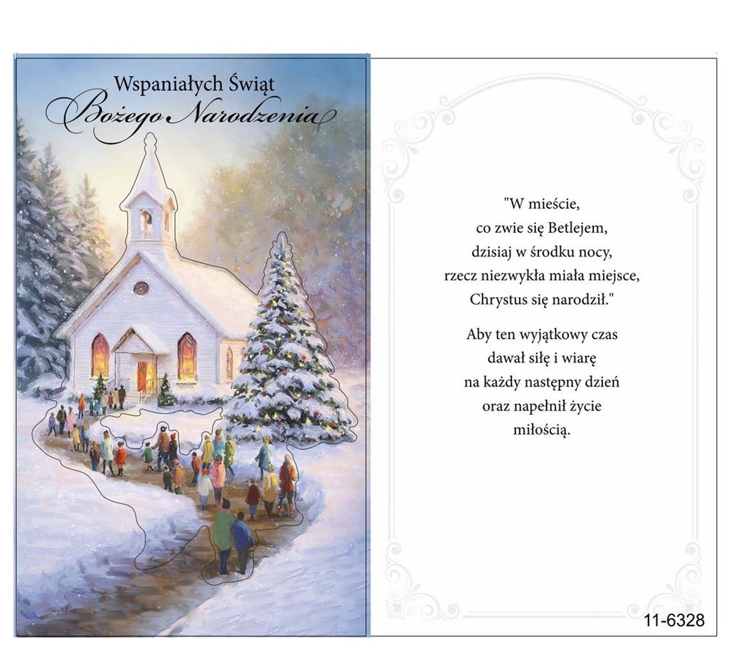 Zestaw karnet świąteczny Boże Narodzenie, 11,5x19 cm. Zawiera pięknie zdobiony karnet z kopertą.
