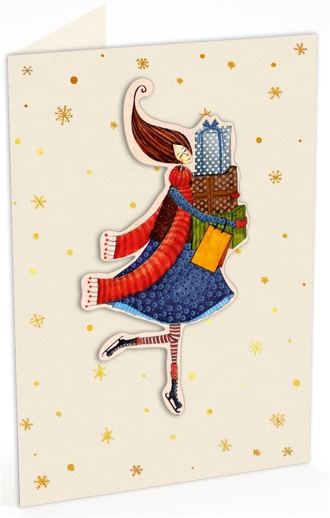 Opakowanie Karnet C6 naklejany + koperta Święta Kobieta z prezentami