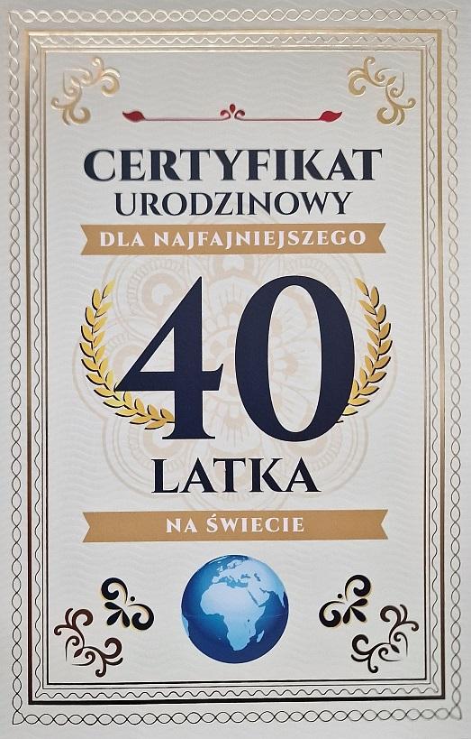 Karnet Certyfikat Urodzinowy 40 urodziny męskie