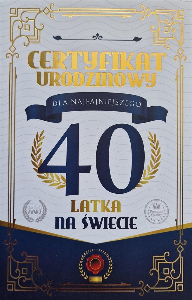 Karnet Certyfikat Urodzinowy 40 urodziny męskie
