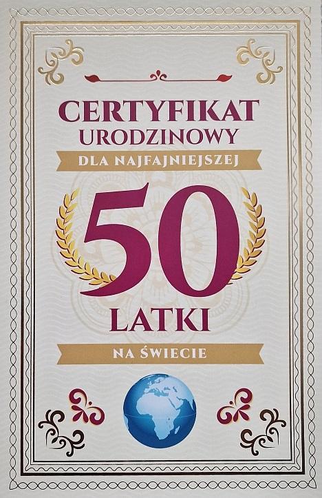 Karnet Certyfikat Urodzinowy 50 urodziny damskie