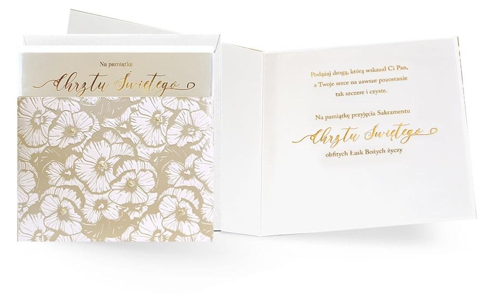 Kartki z serii Primus, to kartki najwyższej jakości, pięknie zdobione m.in złotą lub srebrną folią, tłoczeniami, czy wycinkami laserowymi. Idealne na najważniejsze okazje w życiu, takie jak chrzest, komunia. W środku każdej kartki znajdują się dobrane do okazji życzenia, a do kartki dołączona jest dopasowana koperta. Cechy szczególne: wielkość: niestandardowa, prostokątna, kwadratowa, zdobienia: dekoracje ze złotej folii, doklejane koraliki, tłoczenia koperta: dopasowana w komplecie, wnętrze kartki: życzenia w środku, okazja: Chrzest Święty