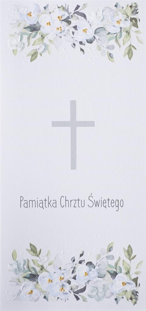 Karnet Chrzest DL C19 - Krzyż kwiaty niebieski